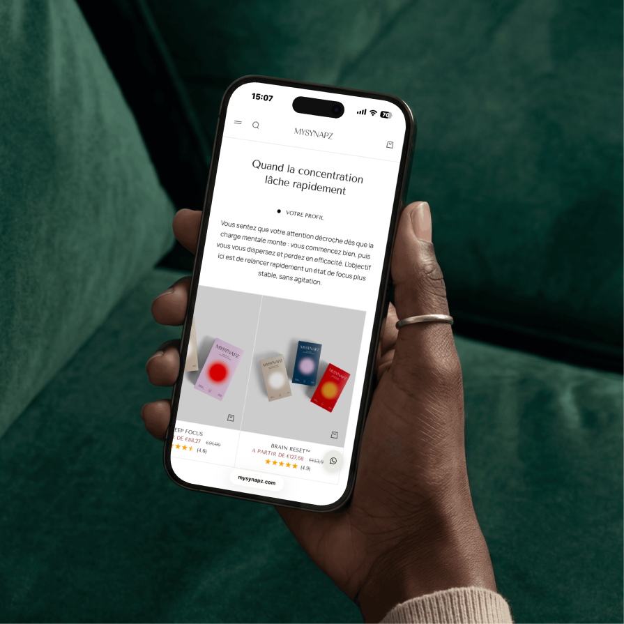 MySynapz associe recherche scientifique, nutrition et technologie pour accompagner durablement l’équilibre cognitif. Une approche structurée au service du bien-être mental.